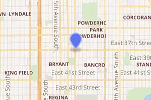 In Minneapolis, 38th street is an east-west thorough fare. West 38th Street runs from Excelsior Boulevard to Nicollet Avenue, but is interrupted by Bde Mka Ska and Lakewood Cemetery. East 38th Street is the stretch of road from Nicollet Avenue to the West River Parkway of the Mississippi River. East 38th Street intersects with Chicago Avenue, a major north-south thoroughfare, in the city's Powderhorn community. The 38th and Chicago street intersection is a border for several city neighborhoods: Bancroft, Bryant, Central, and Powderhorn Park.[6][7] The four neighborhoods have a distinct history in Minneapolis due to the racial and ethnic residential population and development matters over the past century.[3] The neighborhoods were home to approximately 25,000 residents by the 2020s.[8]
