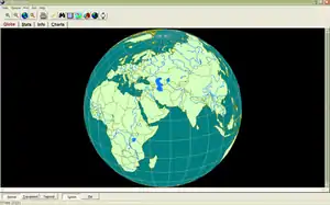 As an atlas software, the 3D World Atlas has many features. These include, but are not limited to, world maps on a 3D globe, thousands of tables and charts, national flags, and a world clock.[3] The software also includes distance measuring and in-depth information on every country, including independence days, government types, and such.[3] There are many tools you can use on the program. These all perform basic tasks helping the viewer in understanding the world.[3] A zoom feature allows you to zoom into countries, and lists major cities, a print option allows you to print the current display of a page, and a find button allows you to find any city, country, river, lake, or continent within seconds.[3]