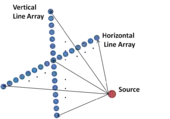 In order to estimate the location of a source in 3D space, two line sensor arrays can be placed horizontally and vertically. An example is a 2D line array used for underwater source localization.[13] By processing the data from two arrays using the maximum likelihood method, the direction, range and depth of the source can be identified simultaneously. Unlike the binaural hearing model, this method is similar to the spectral analysis method. The method can be used to localize a distant source.