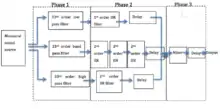 A DSP-based implementation of a realtime 3D sound localization approach with the use of an embedded DSP can reduce the computational complexity As shown in the figure, the implementation procedure of this realtime algorithm is divided into three phases, (i) Frequency Division, (ii) Sound Localization, and (iii) Mixing. In the case of 3D sound localization for a monaural sound source, the audio input data are divided into two: left and right channels and the audio input data in time series are processed one after another.[19]