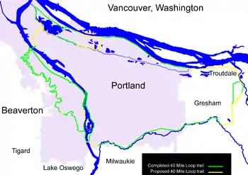 The 40-Mile Loop is a partially completed greenway trail around and through Portland in the U.S. state of Oregon. It was proposed in 1903 by the Olmsted Brothers architecture firm as part of the development of Forest Park.[1][2] One greenway expert calls it "one of the most creative and resourceful greenway projects in the country."[3]