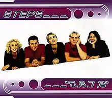 "5,6,7,8" is a song by British group Steps from their debut studio album, Step One (1998). It is a techno-pop and country pop song written Barry Upton and Steve Crosby, and produced by Karl Twigg, Mark Topham and Pete Waterman. It was released as their debut single in November 1997 following their being put together after each group member responded to a magazine advert looking for people to audition to be in a pop band.
