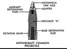 - In the projectile drawing, an Auxiliary Detonating Fuze is screwed onto the bottom of the Mechanical Time Fuze. This is because the time fuze primer does not have enough explosive shock to detonate the relatively insensitive Explosive "D". The Auxiliary fuze uses an intermediate explosive that is set off by the time fuze primer, and in turn, sets off the Explosive "D".