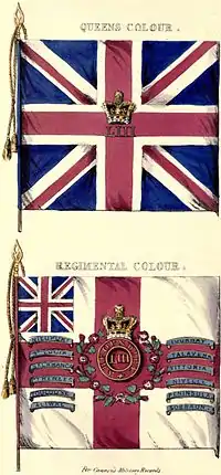 The regiment was raised in Northern England by Colonel William Whitmore as the 55th Regiment of Foot for service in the Seven Years' War.[1] It was re-ranked as the 53rd Regiment of Foot, following the disbandment of the existing 50th and 51st regiments, in 1756.[1] The regiment embarked for Gibraltar in 1756[2] and, after returning home, moved to Ireland in 1768.[3]