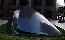 In the plaza the 200-ton black Swedish granite sculpture "Transcendence" by Masayuki Nagare is known as the "Banker's Heart".[11] Nearly the entire block—the skyscraper, the banking hall, the plaza, the stairways, and the sidewalks—is clad in costly polished or rough carnelian granite. A restaurant, the "Carnelian Room", was on the 52nd floor. The elevator to this restaurant is one of the few publicly accessible high-speed elevators in San Francisco. The restaurant closed at midnight New Year's Eve 2009.[12]