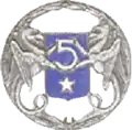 The first badge was designed in 1929 by Captain Lemaire. It represented an "azure star kept in a giant ivory number 5- the badge being entirely enamelled and unframed".