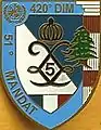 The last badge to be used was created in 1965. It features the model helmet from 1874, with which the Dragoons went to the front in 1914. The mane was exaggeratedly widened in order to accommodate the crowned monogram of king Louis XIV, framing the number 5. The inscription on the edging reminds us that the regiment was created in 1668 to be attached to the responsibility of the Colonel General of the Dragoons created the same year for the benefit of the famous Duke of Lauzun.