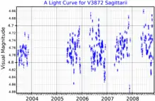 - Hoffleit, D.; Warren, Jr., W. H., "V3872 Sgr, database record", The Bright Star Catalogue (5th Revised ed.), CDS. ID V/50. Accessed on line November 19, 2009.