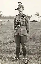 All Australian Light Horse regiments used cavalry unit designations, but were mounted infantry armed with rifles, not swords or lances,[4] and mounted exclusively on the Australian Waler horse.[5] The regiment was issued a wallaby fur puggaree, which was distinctive to other units.[6]