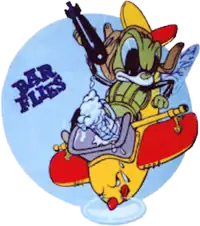 Received P-47D Thunderbolts in late 1943; deployed to Saipan in the Northern Mariana Islands. During the Marianas Campaign, worked closely with Marine ground forces, pioneered close infantry support and employed the first use of napalm. On Saipan the squadron was attacked by Japanese ground forces in June 1944 on Aslito Airfield soon renamed Isley Field, Saipan, sustaining modest casualties. Pilots and ground personnel took a crash course in infantry tactics afterward. Received the new long range P-47Ns in early 1945, before moving next door to Okinawa on Ie Shima.