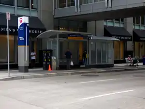 7th-8th Street & Nicollet is a bus rapid transit station on the METRO C Line and upcoming D Line in downtown Minneapolis, Minnesota. The station is located at the intersection of Nicollet Mall, with the northbound platform located on 7th Street and the southbound platform on 8th Street. The platforms are referred to as 7th Street & Nicollet and 8th Street & Nicollet, respectively. The station is located within the Downtown Minneapolis Fare Zone, where riders can travel in the zone for 50¢ with no transfers.