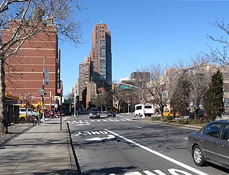 96th Street is a major two-way street on the Upper East Side and Upper West Side sections of the New York City borough of Manhattan. It runs in two major sections: between the FDR Drive and Fifth Avenue on the Upper East Side, and between Central Park West and Henry Hudson Parkway on the Upper West Side. The two segments are connected by the 97th Street transverse across Central Park, which links the disconnected segments of 96th and 97th Streets on each side.