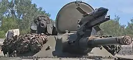 The missile was employed by Arab armies during the initial phases of the Yom Kippur War.[10] Later in the war, the Israelis adopted new tactics and learned to neutralize the Sagger threat by employing large concentrations of artillery fire to either distract or kill the Sagger operators.[10] Other improvised methods used by the Israelis to defeat the Saggers involved firing in front of the tank to create dust, moving back and forth and firing at the source of Sagger fire.[11] These Israeli tactics were later adopted by NATO forces to counter the threat posed by Warsaw Pact ATGMs.[11] In total, Saggers knocked out more than 800 Israeli tanks and other combat vehicles during the war.[12]