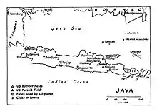 In early January the squadron moved out, first to Hickam Field, then along a long route to the Southwest Pacific via Christmas Island Airfield, Canton Island Airfield, Tontouta Airfield on Fiji, Plaine Des Gaiacs Airfield on New Caledonia then to RAAF Base Townsville in Queensland, Australia. Upon arrival in Australia, the B-17Ds that they had ferried to Townsville were sent to other units in Australia. Instead, the 7th Group would receive new equipment and Consolidated LB-30 Liberators were supplied to the group. From Australia, it was decided to send the 7th Group to airfields on Java in the Netherlands East Indies to conduct raids on advancing Japanese ground forces and naval targets. The first of the personnel of the 9th Squadron reached Java on 10 January when three LB-30 Liberators landed at Bandoeng Airport, then moved on the next day to Malang, where V Bomber Command had established a headquarters.[6]