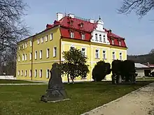 The main square of the town is Goethovo Square named after J. W. Goethe, who often visited the town. In the middle of the square is the Memorial of J. W. Goethe from 1932, designed by Johannes Watzal. The landmark of the square is the town hall. It was built in 1733 in the Baroque style, but in 1814 was burned out. In 1816 it was built again, according to the original plans.[12]