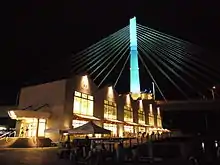 A-FACTORY and the Aomori Bay Bridge illuminated during the night.