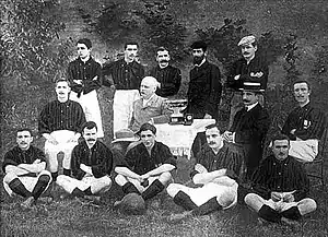 AC Milan was founded as Milan Foot-Ball and Cricket Club in 1899 by English expatriates Alfred Edwards and Herbert Kilpin.[5] The club claims 16 December of that year as their foundation date,[17] but historical evidence seems to suggest that the club was actually founded a few days earlier, most likely on 13 December.[18] However, with the club's charter being lost, the exact date remains open to debate.