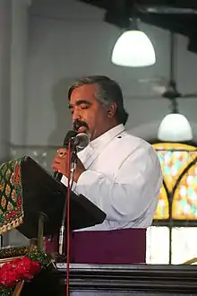 A. C. Solomon Raj (born 18 March 1961)[2] is the seventh successor of Frank Whittaker and eighth[8] Bishop in Medak of the Protestant Church of South India Society and shepherds the Diocese from the Cathedra of the Bishop housed in the CSI-Medak Cathedral in Medak Town, Telangana, India. On 12 October 2016,[3] the Church of South India Synod headquartered in Chennai, appointed Solomon Raj to assume the ecclesiastical Office of the Bishopric of Medak and was consecrated the next day on 13 October 2016[9] at the CSI-St. George's Cathedral, Chennai,[7] ending four years[10] of sede vacante in the Diocese of Medak which was without a bishop during the intervening period of 2012–2016.[11]