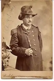 They gave their first formal concert on July 17, 1857, at Union Hall on Beverley Street in Staunton.[21] By 1859 the band had come to be known as Turner's Silver Cornet Band.[22][23] At Armory Hall on April 4, 1861, Turner's Silver Cornet Band, together with the Staunton Musical Association and the Glee Club, presented the last concert to be given before the Civil War.[14] Turner played the soprano cornet.