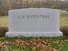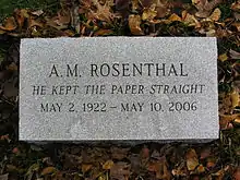 Rosenthal died in Manhattan on May 10, 2006, eight days after his 84th birthday. He is interred in Westchester Hills Cemetery in Hastings-on-Hudson, New York. His epitaph inscribed on his grave marker ("He kept the paper straight") was chosen to memorialize his efforts at The New York Times to deliver unbiased news.[18]