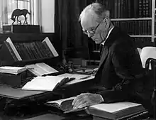Gow, like his friend and Trinity colleague Housman, was known for his high standards, impatience with anything second-rate, and a sharp tongue.[3] His Eton colleague and lifelong friend George Lyttelton commented, "That Housman blend of an impossibly lofty and unsympathetic standard with needlessly abusive words is really very regrettable and unhelpful".[9] The Times observed that another side to Gow's character was shown in the letters he wrote month by month to pupils serving in the forces during the Second World War: "In them he is as his friends knew him – wise, warm-hearted, and possessed of a rich sense of humour.[3] For Housman, "No one could have a better friend than I have found in Gow,"[3] although even Gow sometimes found the older man daunting: when asked by colleagues to put a knotty question of translation to Housman, he refused, on the grounds that Housman would merely say that the meaning was obvious to the feeblest intellect.[10] Shortly after Housman's death in 1936 he published a short study of his friend; although it concentrated on Housman's scholarship, in Lloyd-Jones's view it "throws more light upon him than almost any of the studies by literary persons".[1] Gow acted as Housman's literary executor, collaborating uneasily with Laurence Housman, the poet's brother, whom he found difficult;[11] Gow supervised a second edition of Housman's edition of Manilius in 1937.[1]