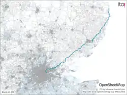 The A12 is a major road in England. It runs north-east/south-west between London and the coastal town of Lowestoft in the north-eastern corner of Suffolk, following a similar route to the Great Eastern Main Line until Ipswich. A section of the road between Lowestoft and Great Yarmouth became part of the A47 in 2017.[1] Between the junctions with the M25 and the A14, the A12 forms part of the unsigned Euroroute E30 (prior to 1985, it was the E8). Unlike most A roads, this section of the A12, together with the A14 and the A55, has junction numbers as if it were a motorway.