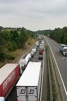 Junction 55 (Copdock interchange) to the south of Ipswich was signalisation in 2011, along with lengthening the off-slip from the A1214.[18][19] The section around Kettering between Junctions 7 and 9 was widened to three lanes between November 2013 and April 2015 at a cost of £42m.[20]