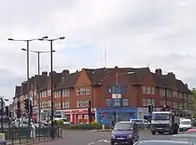 After crossing The Bishops Avenue, the A1 becomes Lyttelton Road, which was laid out in 1931 as part of the residential development of the area,[65] and runs east–west along the northern foot of Highgate Hill between Hampstead Garden Suburb and East Finchley. It is for the most part residential; on the northern side stands the Belvedere Court block of flats. Built with the road in the 1930s, the building is now Grade II Listed as an example of 1930s architecture.[66]