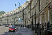 The route enters the outskirts of Bath passing by the training grounds of Bath RFC. After a series of traffic light controlled junctions, the A4 continues straight ahead where it meets the A36. It passes Hedgemead Park and down The Paragon before crossing into George Street and to Queen Square.