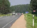 The A5 is a national road in Latvia which is part beltway around Riga, connecting Salaspils to Babīte.[1] The road is also known as Riga bypass. The road is part of European route E67, European route E77 and Latvian TEN-T road network. The length of A5 is 41 kilometer. Currently A5 has 1x1 lanes until interchange with A9 then it turns to 2x2 all the way until Babīte. Most of the traffic on A5 is made up by trucks.[2] A5 crosses river Daugava on Riga HES, and the A5 part on the HES has been reconstructed in 2010/2011. Another part of A5 between A8 and A9 was reconstructed in 2011. There are plans to build a new bridge over Daugava opposite to the end of A4 (part of Riga bypass on other side of Daugava), in further future.[3] Current speed limit is 90 km/h. The average AADT of A5 in 2016 was 12 482 cars per day.