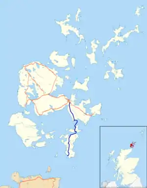 The A961 is a single-carriageway road on the eastern side of Scapa Flow in the Orkney Islands, connecting the town of Kirkwall on the Orkney Mainland to Burwick at the southern end of South Ronaldsay.[1][2]