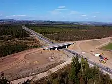 In November 2011 the Scottish Government announced that it would upgrade the entire road from Perth to Inverness to dual carriageway.[16] The design contract was split into three lots with Lot 1 (Glengarry to Dalraddy) awarded to a CH2MHill/Fairhurst joint venture in April 2014.[17] Lot 2 (Pass of Birnam to Glengarry) was awarded to Jacobs in August 2014[18] and Lot 3 was awarded to an Atkins/Mouchel joint venture in December 2014.[19] Award of the construction contract for a preliminary section (outwith Lots 1 to 3) of the £3 billion project was awarded in June 2015,[20] and work began on the five mile section between Kincraig and Dalraddy (just south of Aviemore) in September 2015. After a slight delay this section was opened to traffic on 30 September 2017.[21] The full scheme is scheduled to be completed in 2025.[22][23][24]