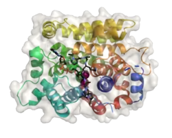 (ADP-ribosyl)hydrolase 3 (ARH3) is an enzyme that in humans is encoded by the ADPRHL2 gene (also called ADPRS[5]).[6][7][8] This enzyme reverses the proteins’ post-translational addition of ADP-ribose to serine residues as part of the DNA damage response[9][10] The enzyme is also known to cleave poly(ADP-ribose) polymers, 1''-O-acetyl-ADP-ribose and alpha-NAD+[10][11][12][7][13]