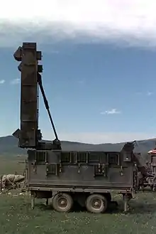 Hughes AN/TPQ-37 Firefinder Weapon Locating System[1] is a mobile radar system developed in the late 1970s by Hughes Aircraft Company, achieving Initial Operational Capability in 1980 and full deployment in 1984. Currently manufactured by ThalesRaytheonSystems, the system is a long-range version of “weapon-locating radar,” designed to detect and track incoming artillery and rocket fire to determine the point of origin for counter-battery fire. It is currently in service at brigade and higher levels in the United States Army and by other countries. The radar is trailer-mounted and towed by a 2⅓-ton truck. A typical AN/TPQ-37 system consists of the Antenna-Transceiver Group, Command Shelter and 60 kW Generator.