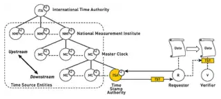 - Time source entity - Most countries have an official source of time and this has been codified over the last hundred years through any number of Mutual Recognition Agreement's and Legal Metrological Agreements (see http://www.oiml.org for more information on Legal Metrology). Why this is important is now that the Internet has made it possible to reach directly into the laboratory that operates the official source of time for that jurisdiction, the many layers of "middlemen” who stood between the end-user and the source of time are now gone. As such, time that can be shown as traceable to the specific national measurement institute or master clock of that jurisdiction is the only source that provides the approved "Time Calibration Source" for X9.95. Examples include NIST in the US and Bureau International des Poids et Mesures (BIPM). Other regulatory frameworks also require that time that is moved through the Network Time Protocol ntp is properly certified and authenticated meaning unauthenticated use of time from any provider will fail X9.95 requirements for obtaining time in a provable manner.