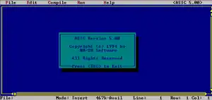 ASIC is a compiler and integrated development environment for a subset of the BASIC programming language. It was released for MS-DOS and compatible systems as shareware. Written by Dave Visti of 80/20 Software, it was one of the few BASIC compilers legally available for download from BBSes. ASIC allows compiling to an EXE or COM file. A COM file for Hello world program is 360 bytes.[3]