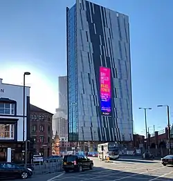AXIS (also known as the Axis Tower) is a tower in Manchester city centre, Manchester, England.[5] The tower has had two iterations, one as a stalled construction project which was cancelled due to the Great Recession in 2008, and the other as residential which was announced in 2014. When completed, Axis Tower became the seventh tallest building in Manchester until the completion of the Deansgate Square and Angel Gardens projects, the latter currently under construction.
