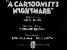 A Cartoonist's Nightmare is a 1935 Warner Bros. theatrical cartoon short in the Looney Tunes series, starring Beans the Cat in his first solo film.[1] The film was directed by Jack King and was released on September 21, 1935.[2]