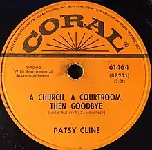"A Church, a Courtroom, Then Goodbye" is a song by American country music singer Patsy Cline. It was composed by Eddie Miller and W.S. Stevenson. It was released as Cline's debut single in July 1955 via Coral Records.