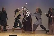 After receiving favorable reviews, the play expanded its Twin Cities production to two performances in 2008 and a three-week (12 night) run in 2009 (at the Paul & Sheila Wellstone Center and Mixed Blood Theater, respectively).[5][6] The 2009 production featured a script with Klingon-language revisions by Chris Lipscombe, a member of the Klingon Language Institute.[7]