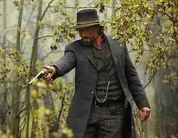 While exploring his new canvas home, the foreman's tent, Cullen Bohannon (Anson Mount) comes across a photograph of now-deceased foreman Daniel Johnson, depicting him as a Union captain posing with some of his regiment. Bohannon reflects on having previously killed three men in the picture. His eyes fixate on the last of them: Sergeant Harper, whom Bohannon believes strangled Bohannon's wife and then hanged her body to stage her suicide and cover up the murder.