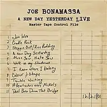 A New Day Yesterday Live is the first live album by American blues rock musician Joe Bonamassa. Recorded in December 2001 during the promotional tour for Bonamassa's debut album A New Day Yesterday,[1] it was released in 2002 by Premier Artists.