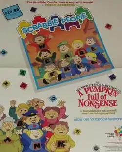The Adventures of the Scrabble People in A Pumpkin Full of Nonsense is an animated television special from 1985, made at Jaime Diaz Studios in Buenos Aires, Argentina.[4] It was produced and directed by Alvaro Arce, and co-directed by Jaime Diaz. In the special, a character called Sir Scrabble and two children travel to a land called Nonsense, where education has been forbidden. Sir Scrabble teams up with the residents to defeat an evil ruler, the Muddler, through the power of learning and spelling.