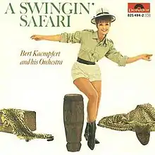 "A Swingin' Safari" is a 1962 instrumental composed by Bert Kaempfert,[2] using his alias, Bernd Bertie. It was recorded by Kaempfert on Polydor Records and released in the United States on Decca Records. The song features a distinctive main theme played on the piccolo as substitute for the traditional tin whistle, and a trumpet solo by Manfred "Fred" Moch.[3] The single did not reach the charts.
