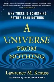 A Universe from Nothing: Why There Is Something Rather than Nothing is a non-fiction book by the physicist Lawrence M. Krauss, initially published on January 10, 2012 by Free Press. It discusses modern cosmogony and its implications for the debate about the existence of God. The main theme of the book is how "we have discovered that all signs suggest a universe that could and plausibly did arise from a deeper nothing—involving the absence of space itself and—which may one day return to nothing via processes that may not only be comprehensible but also processes that do not require any external control or direction."[1][2]