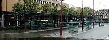 Outside station is the main bus station, opened in 2006,[10] and a park-and-ride car park. At the bus station is the information centre of the Verkehrsgemeinschaft Aalen (Aalen Transport Corporation). In 2003 a bike parking area with 204 places was opened,[11] which is under video surveillance for protection from theft.[12]
