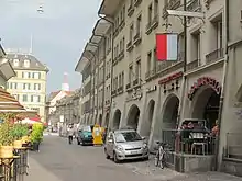 The Aarbergergasse ("Aarberg Lane") is one of the streets in the Old City of Bern, the medieval city center of Bern, Switzerland. It was originally the most important of the five streets that were part of the Äussere Neustadt, which was the section outside the city walls. One fountain, the Ryfflibrunnen on the Aarbergergasse is listed on the Swiss inventory of heritage site of national significance[1] and it is part of the UNESCO Cultural World Heritage Site that encompasses the Old City.