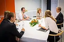 The first annual Aarhus Symposium welcomed renowned speakers from the business society such as Carsten Bjerg (then CEO of Grundfos), Lars Rohde (then CEO of ATP), and Maria Rønn (CEO of Danmarks Radio).[10] Throughout the years, the programme has extended to include prominent speakers such as His Royal Highness The Crown Prince of Denmark,[11] Lars Rebien Sørensen (president and CEO of Novo Nordisk),[12] and the Danish Prime Minister Lars Løkke Rasmussen.[13]