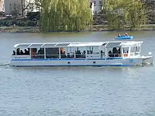 The "Waterbus Professor Landois", which was named after Hermann Landois, the founder of the zoo in Münster, was built from mahagony on oak in a shipyard on Dümmersee (lake Dümmer) in 1974 based on the model of a Dutch canal boat with a length of 17 meters and a width of 4.50 meters.[17] After 36 years of service and it's last trip, the water bus was transferred to a shipyard in Stralsund on November 6, 2011.[18] The successor was also built there.