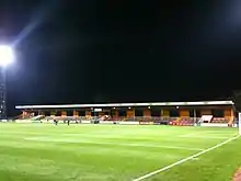 The stadium's frontage, often criticised for negatively portraying the stadium, was refurbished during late June and early July 2007.[14] This involved recladding portacabins that serve as Cambridge United's offices and general maintenance of the stadium's car park. The following summer the rear wall of the Newmarket Road End was redecorated in amber with a black 'Amber Army' motif, a term for the club's supporters.[15]